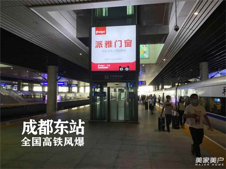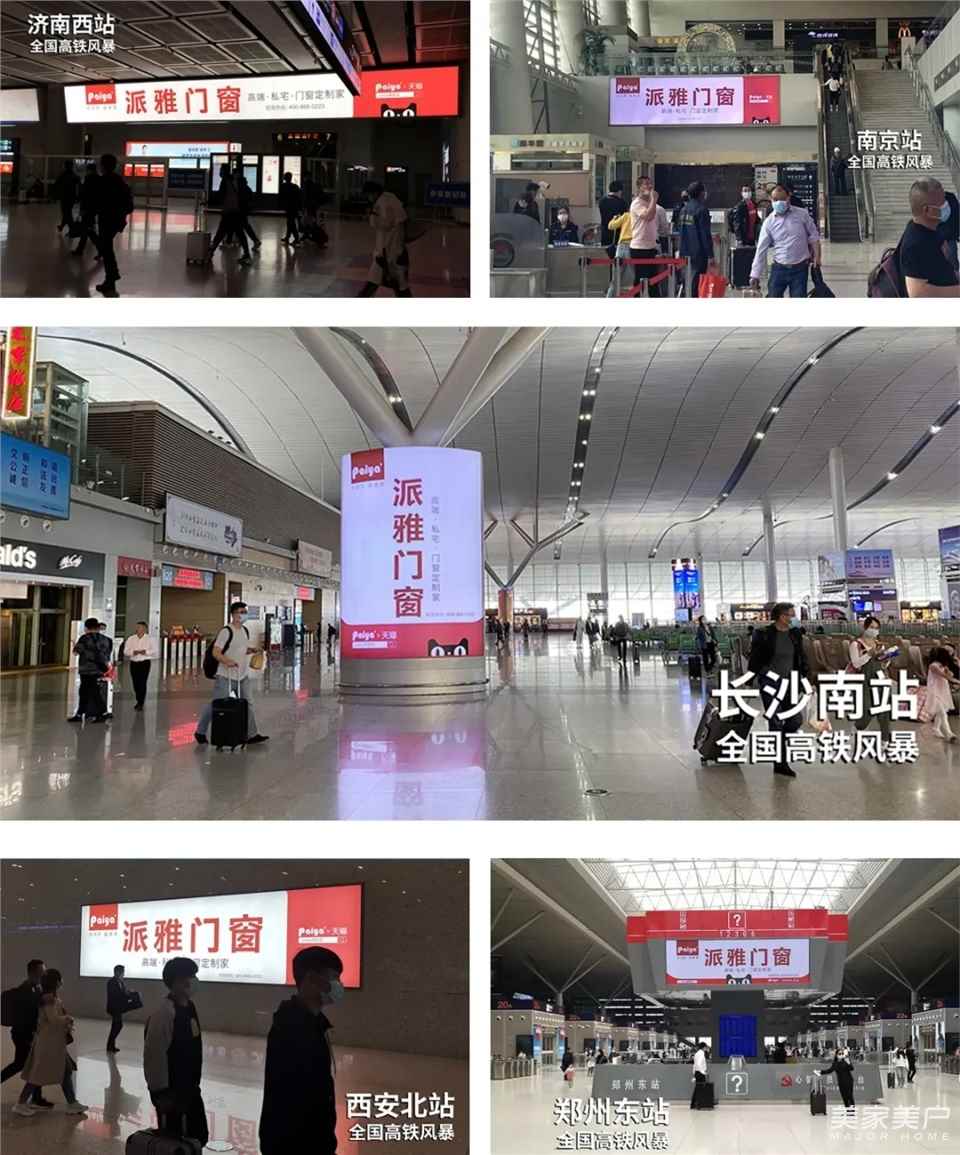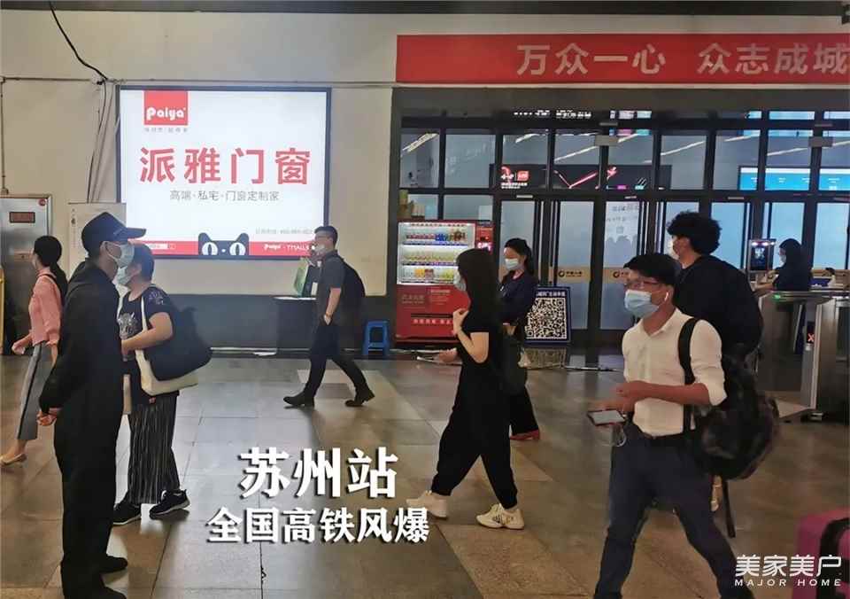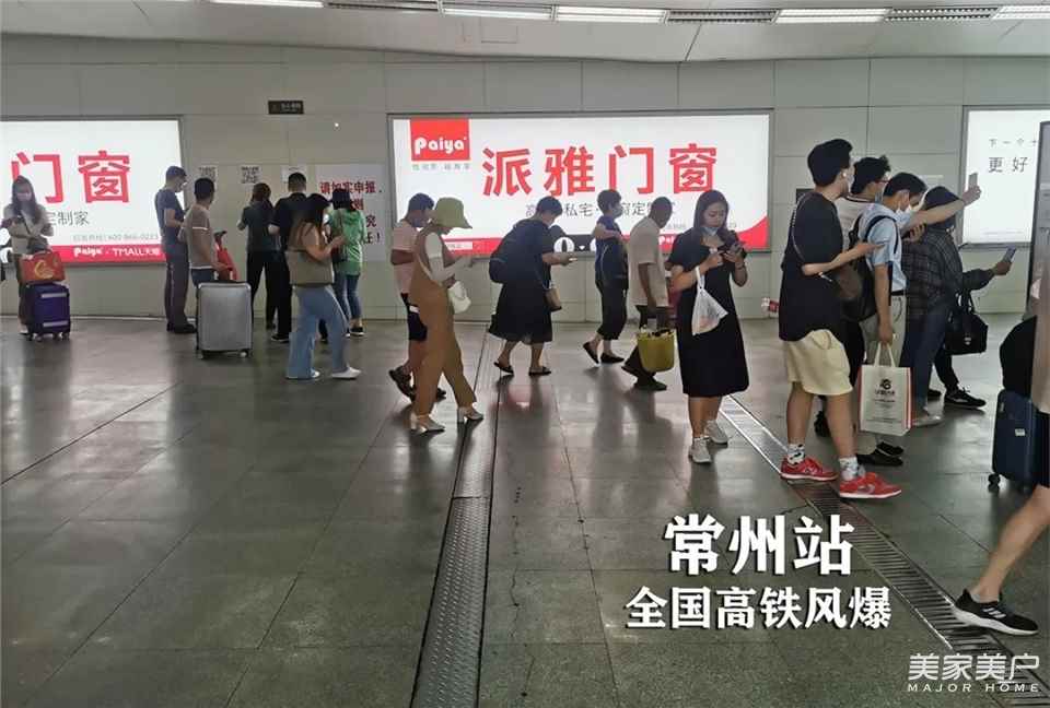 看得见的品牌实力,看得见的派雅速度!本次高铁广告投放覆盖全国城市经济核心高铁枢纽站点,包括上海虹桥站、无锡站、无锡新区站、苏州阳澄湖站、南京南站、苏州园区站、苏州新区站、常州站、镇江站、戚墅堰站、成都站、重庆北站等高铁站,12站联动投放,在一流品牌林立的高铁站,面向数以千万级的高端客流量,无论在候车大厅、检票口、出站口等黄金高客流量区域,都能看到派雅门窗广告屏,现场视觉震撼冲击,展现派雅品牌王者霸气。派雅门窗优选囊括全国核心城市高铁站,全面精准传达派雅门窗品牌价值,抢占品牌传播高地。这必将大幅提升派雅品牌的曝光度与知名度,同时也进一步将“专注理想人居,尊享幸福定制”的品牌主张传递给更多的消费者!依托大传播战略,搭载中国高铁速度,派雅门窗将凭借强劲的产品力和传播力向全球展现中国门窗品牌的实力与魅力。