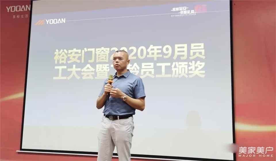 裕安董事长黄秋盛先生和裕安门窗生产中心、营销中心、行政中心、采购、研发等各职能部门全体领导和员工参加了此次大会。