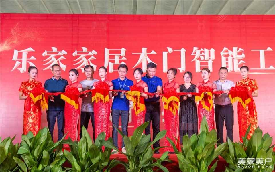 上午十点,在潜江市乐家木业有限公司第三工厂十号车间开阔厂房里,随着中国木材与木制品流通协会全屋定制协会常务副秘书长谷秋全、潜江市总口管理区党委委员、副主任李朝慧、乐家家居董事长詹夏、潜江市乐家木业有限公司副总经理梁喜、展辰涂料集团副总裁周言明等六位剪彩嘉宾的剪刀落下,乐家家居木门智能工厂的生产线正式启动,也标志着乐家家居生产企业向智能制造企业升级转型迈出了一大步。