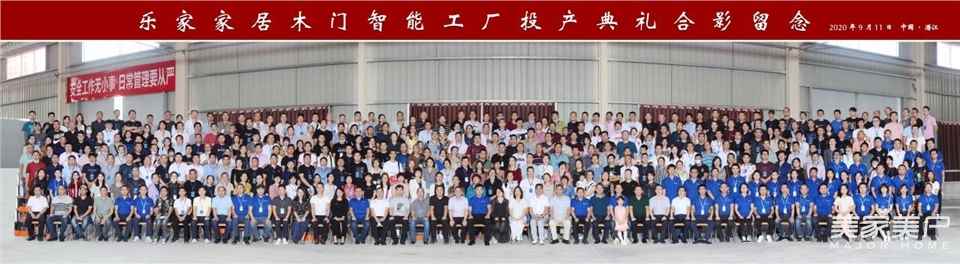 在乐家家居木门智能工厂投产典礼上,来自全国各地400多位家居行业从业者济济一堂,见证了一座现代化的生产企业的启动仪式,见证了智能化的生产线上一扇扇精美的木门产品从无到有的过程,更是聚在一起在专业摄影师的引领下拍摄了一张容纳四百人的巨幅合影,为今天这一激动人心的时刻留下难忘的回忆。