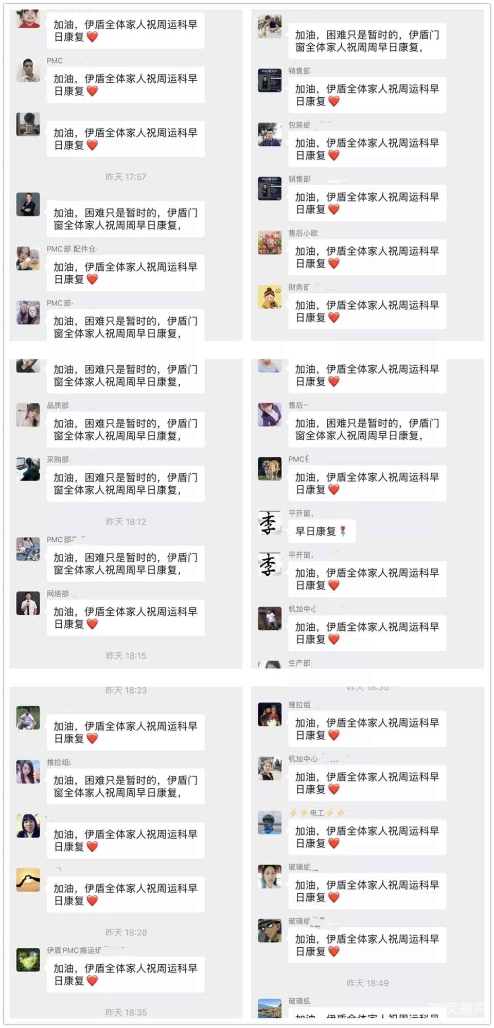 以下是伊盾总部同事为周运科祝福的部分微信群截图: