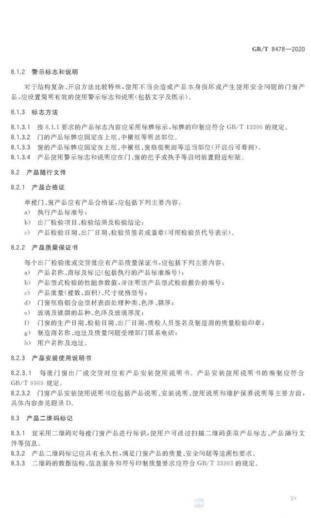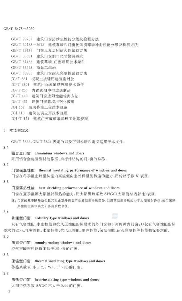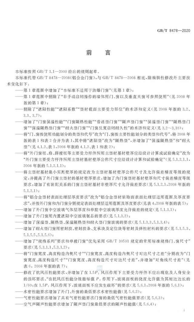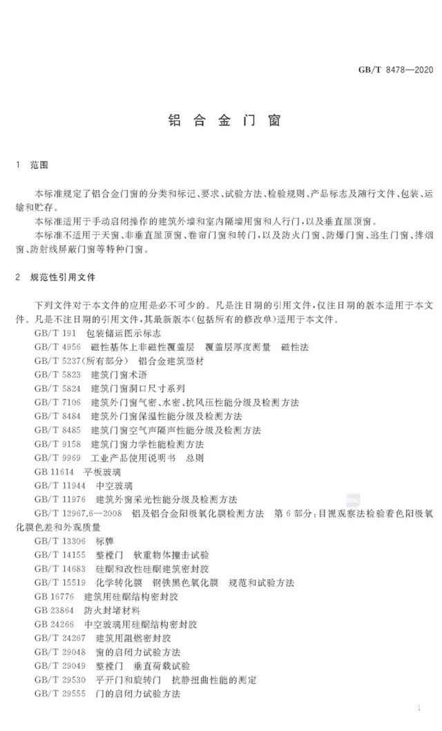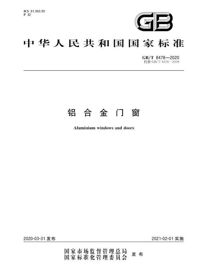 2020版最新的“铝合金门窗”国家标准GB/T8478-2020,已于2020年3月31日发布,并将2021年2月1日起正式实施,代替现行的GB/T8478-2008标准。