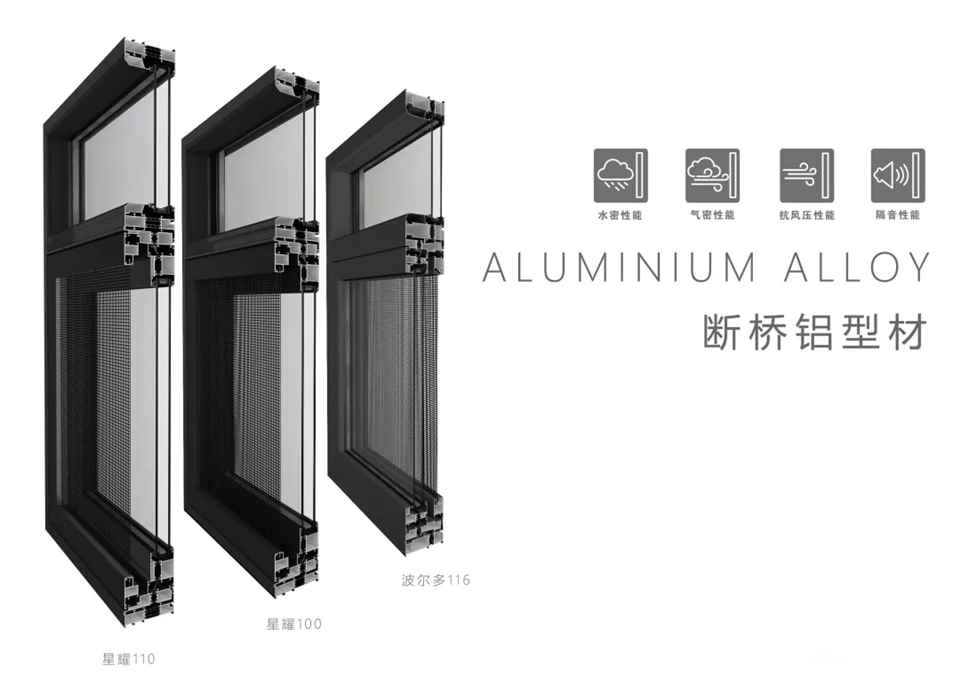 断桥铝型材,采用PA66隔热条将室内外两层铝合金断开。尼龙导热慢,热量就不容易传递了。