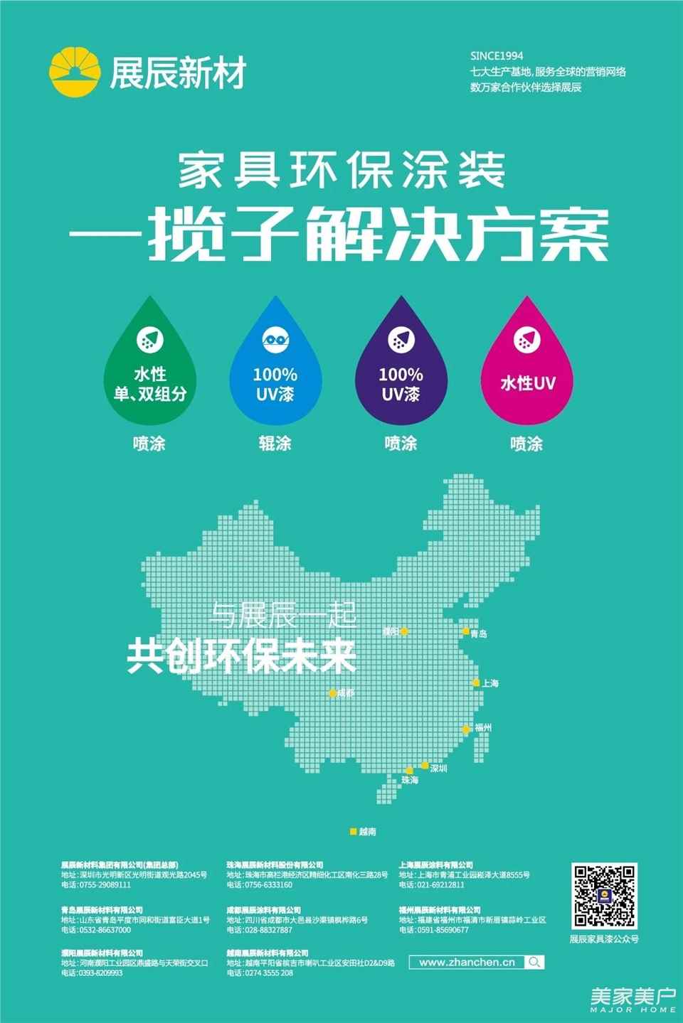作为涂料企业的典型代表,展辰新材坚持“致力于客户成功”的经营宗旨,通过优质的涂料产品和系统的涂装解决方案,持续推动中国家具制造涂装升级,为客户创造价值,为消费者带来健康环保的居家环境。