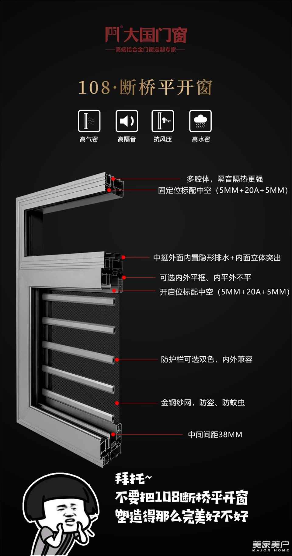 在窗户板块,众所周知,未来断桥平开窗是整个铝门窗定制行业的一个风口,也是发展的主流趋势。大国门窗在断桥平开窗产品上倾注了大量的精力。今年,大国将主流款108系列升级为系统窗,使其具备了系统门窗的固有元素,同时对65和85延伸款以及100和120延伸款也做了改良和提升。杨总认为,“对于现在的市场,产品的提升是一个基础,企业真正的内核是产品的品质。产品品质是支撑品牌的重要元素。所以,大国门窗一直以‘大国门,大国崛起’为经营理念,注重提升产品品质,用大国工匠的精神去铸造大国品质。”