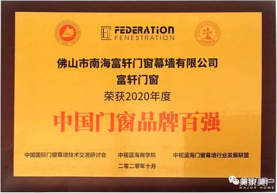 实力登榜|祝贺富轩门窗再次荣获“中国门窗品牌百强”称号