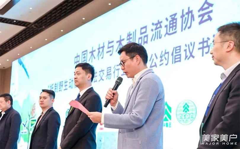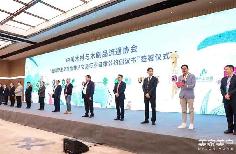 随后,中林物资有限公司、北新国际木业有限公司、靖江国林木业有限公司、广西林业集团桂谷实业有限公司、浙江世友木业有限公司、广西森工集团股份有限公司、久盛地板有限公司、浙江良友木业有限公司、浙江升华云峰新材股份有限公司、千年舟新材科技集团有限公司、浙江森林之星文化地板有限公司、江苏庞氏木业集团有限公司、德华兔宝宝装饰新材股份有限公司代表上台,共同宣读了抵制野生动植物非法贸易倡议书。