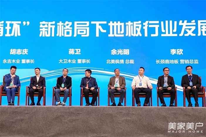 最后,由圣象集团有限公司总裁助理陈大男主持,浙江柏尔木业有限公司董事长朱国良、浙江永吉木业有限公司董事长胡志庆、苏州大卫木业有限公司董事长蒋卫、北美枫情木家居(江苏)有限公司总裁余光明、佛山市长颈鹿木地板制造有限公司营销总监李欣、嘉兴荣氏木业有限公司营销总监焦永明、常州市地板协会秘书长王国新进行了以“双循环新格局下地板行业发展趋势与机遇”为主题的论坛分享。