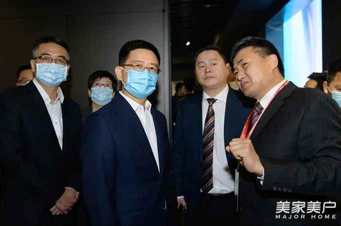 中国对外贸易中心(集团)副总裁徐兵、全国工商联家具装饰业商会执行会长张传喜、广东罗浮宫家居集团总裁陈桂芳、博洛尼家居用品(北京)股份有限公司董事长蔡明、广东顶固集创家居股份有限公司董事长林新达、广州市蓝谷智能家居股份有限公司董事长施振生、广东省家具协会会长王克、广东省家具商会会长周子鹏、广东省门业协会会长关润开,以及来自各地行业商、协会的领导、家居商场、品牌企业负责人和新闻媒体等100余人出席。