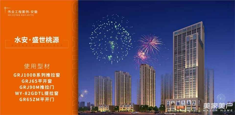 水安盛世桃源秉承着深耕徽皖60余载的水安建筑初心,对于产品的每一处细节都严格把控,用匠心与责任心回馈城市。项目总建筑面积约24万㎡,采用伟业铝材GRJ89、GRJ100B系列推拉窗、GRJ65平开窗、GRJ90M推拉门、WY-82GDTL提拉窗、GR65ZM平开门产品,助力水安盛世桃源品质人居。