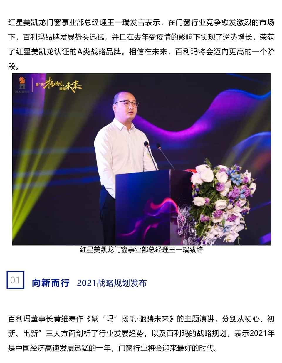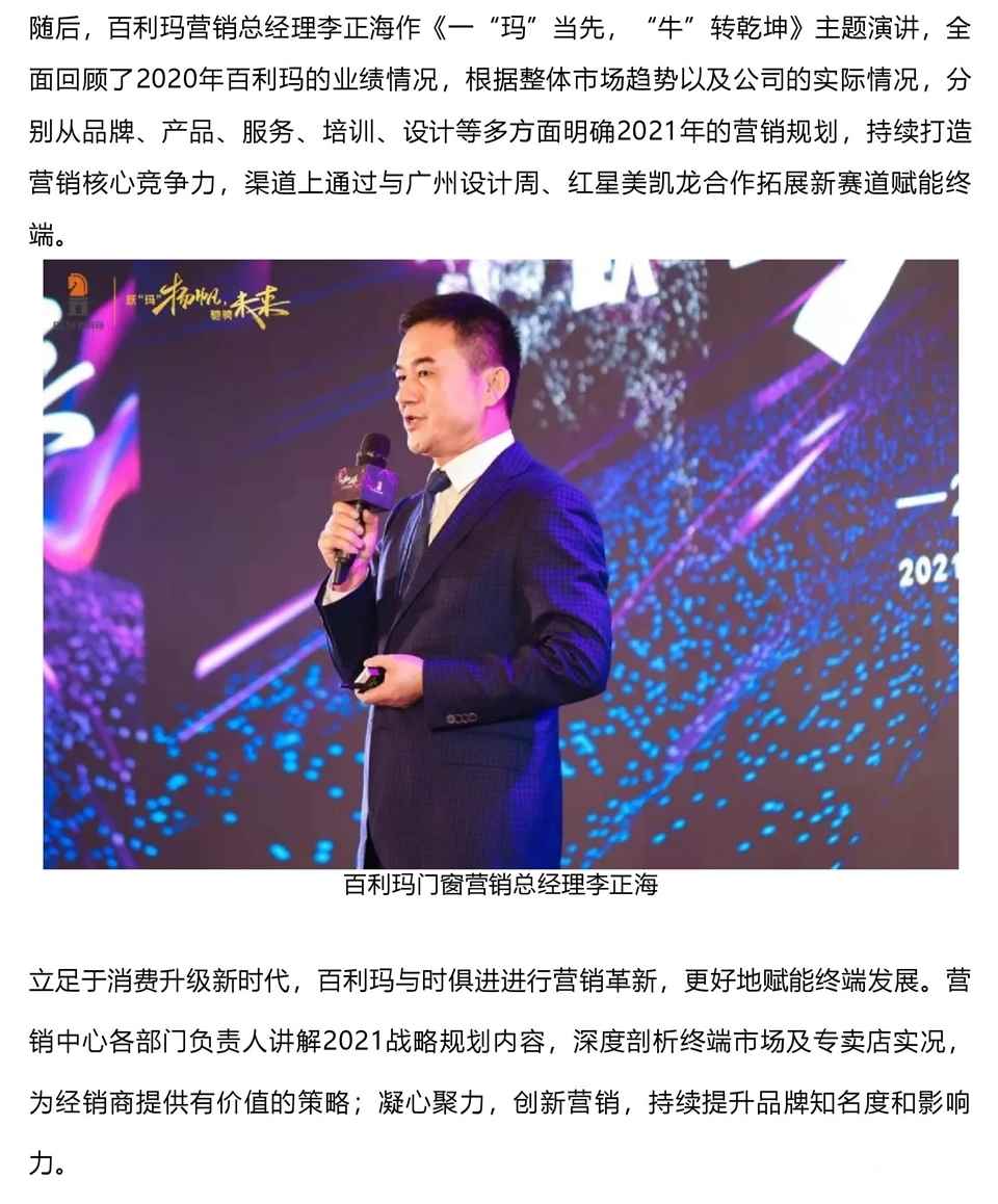 3月30日,“跃“玛”扬帆·驰骋未来”百利玛门窗2021年战略合作经销商营销峰会在佛山圆满举行,汇聚行业领导、媒体朋友以及来自全国各地的经销商家人,齐聚一堂,聚焦2021年行业新趋势,抓住新机遇。![]()