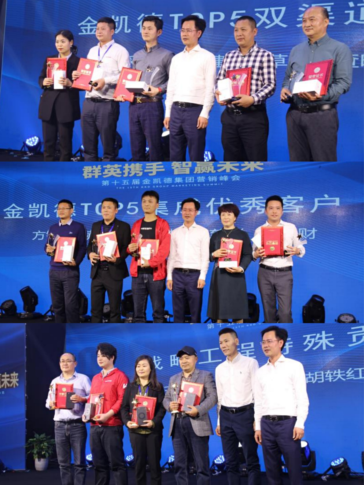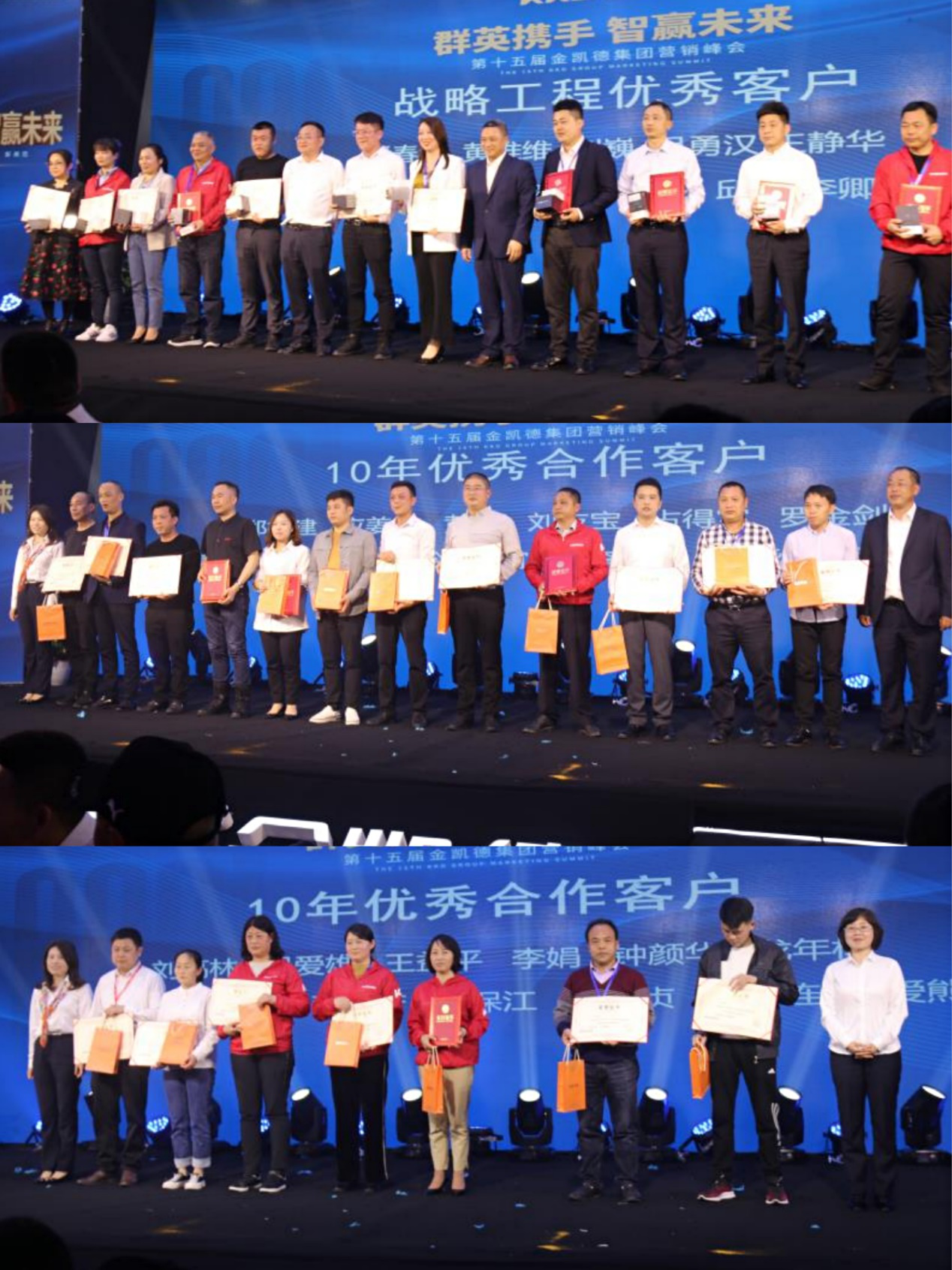 过去的十五年,有经销商家人的一路陪伴,金凯德才有今天的成绩。晚宴上,对各方面做出突出贡献的经销商进行了表彰。