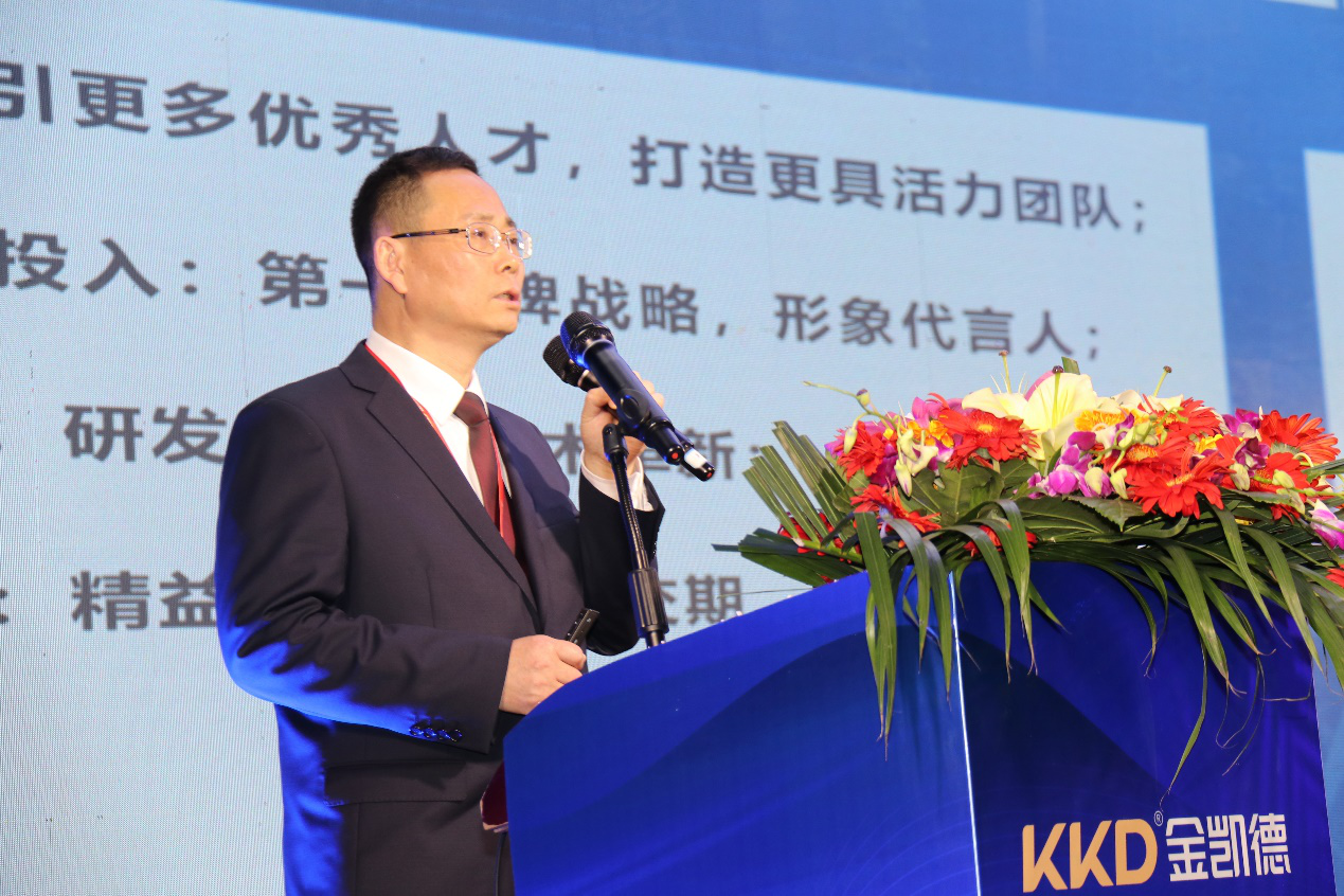 金凯德集团总经理倪勇在会上致辞并做了品牌战略部署规划发布。他说金凯德能发展到今天,离不开睿智者与信赖者的鼎力加持,感恩每一位选择金凯德的伙伴,希望未来大家能更亲密地走下去。在现场,他也讲述了各部门要担负的职责并邀各部门负责人上台做宣言词。承诺他们将竭尽全力为经销商赋能,成就合作者,造就更多千万及过亿的大商!