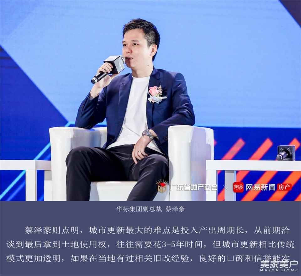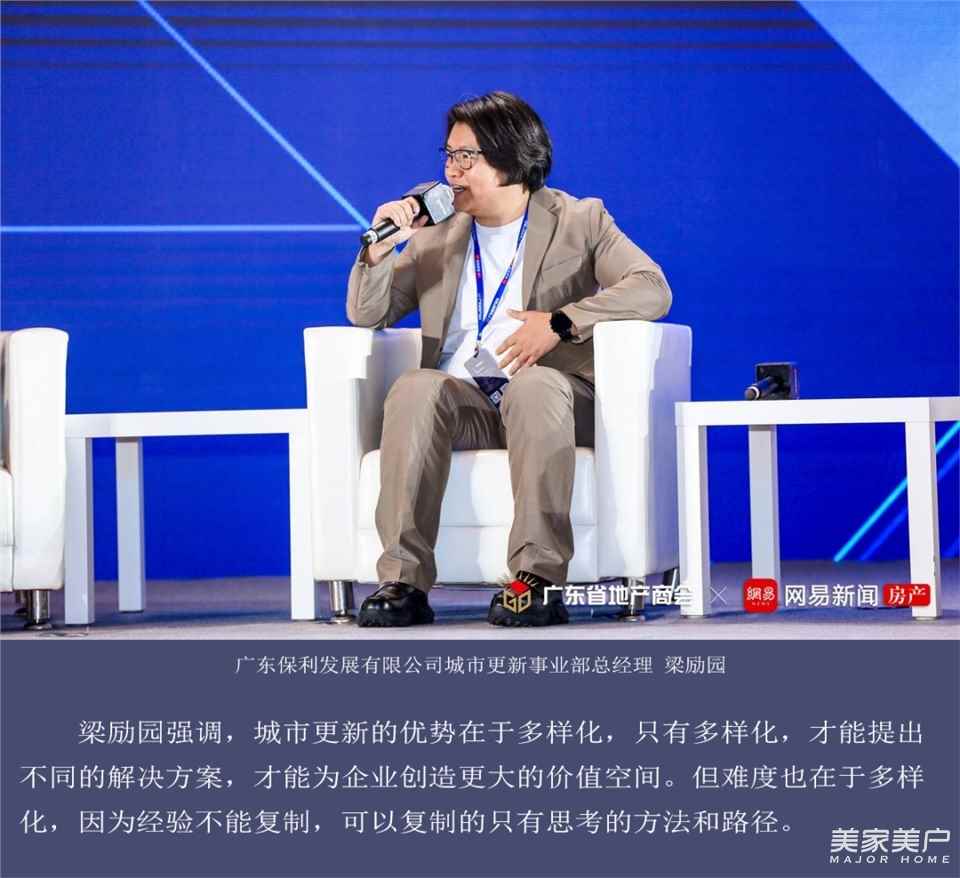 在“城市更新风口,再造第二曲线”圆桌对话中,网易房产全国总编辑严家森担任主持,富力城市更新集团(广州)总裁谢昊,广东保利发展有限公司城市更新事业部总经理梁励园,雅居乐城市更新集团副总裁夏阳,时代中国集团助理总裁/、城市更新中心总经理崔久峰,合景泰富城市更新集团副总裁覃朗,广东奥园城市更新集团总经理朱敏,华标集团副总裁蔡泽豪等嘉宾,同台交流,激发思想火花。
