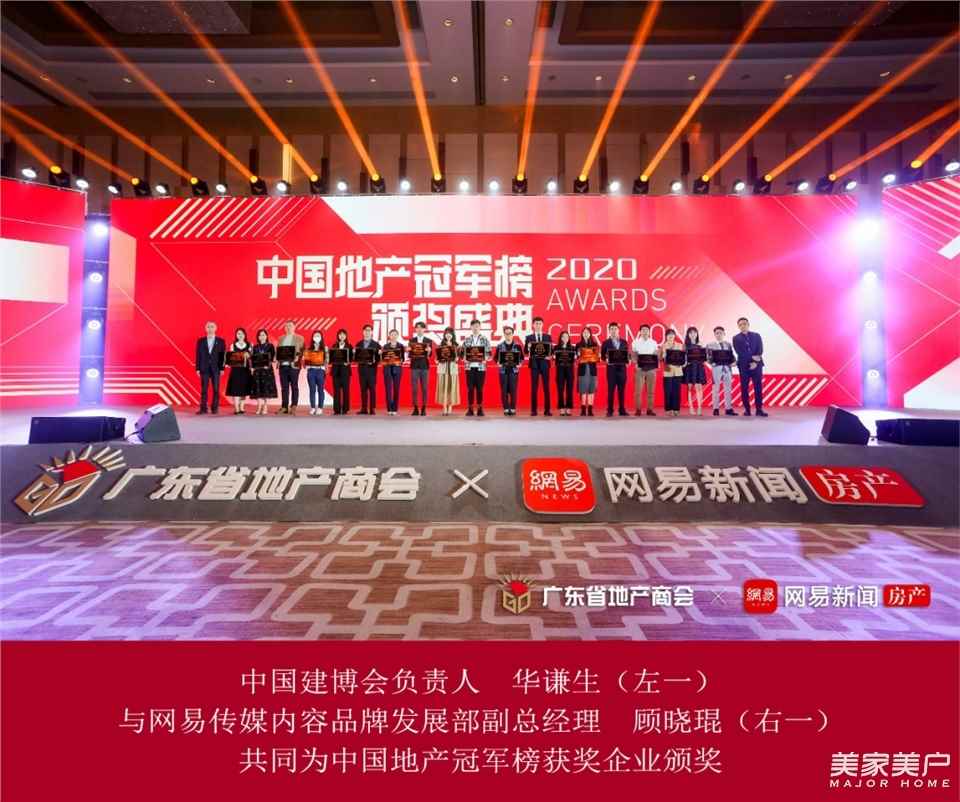 3月26日,由广东省地产商会和网易房产共同主办,中国建博会和中国家博会大力支持的2021中国房地产全行业领袖新年峰会暨中国地产冠军榜颁奖盛典在广州南丰朗豪酒店盛大举办。活动邀请了星河湾集团董事长黄文仔、万科集团董事会主席郁亮、海印实业集团董事长邵建明、时代中国董事局主席岑钊雄、合景泰富控股执行董事兼主席孔建岷等知名房企领袖以及地产行业高管和顶级学者近1000人出席。