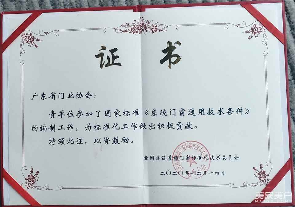 广东省门业协会获此殊荣,实至名归。作为中国最大的省级门窗行业组织,近两年来,广东省门业协会多次组织会员企业积极参与GB/T 39529-2020《系统门窗通用技术条件》的编制工作中,并协助全国建筑幕墙门窗标准化技术委员会深入广东优秀门窗企业多次开展调研工作,为国家标准GB/T 39529-2020《系统门窗通用技术条件》编制工作起到了积极的促进作用。