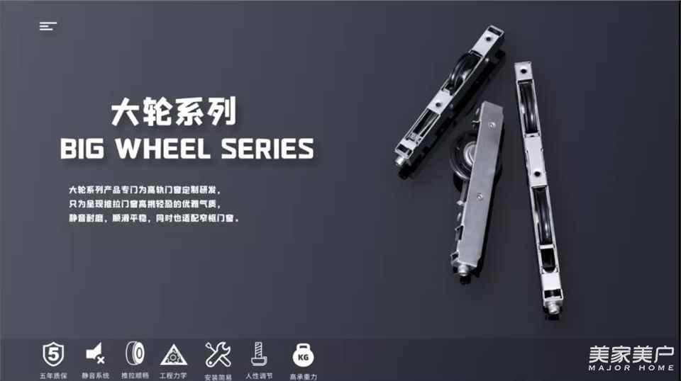 大轮系列产品专门为高轨门窗定制研发,只为呈现推拉门窗高挑轻盈的优雅气质,静音耐磨,顺滑平稳,同时也适配窄框门窗。