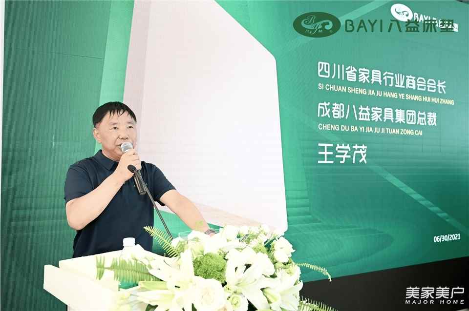 会议开始,八益集团总裁王学茂先生进行了精彩的开场致辞,对到场的各位来宾表示了热烈的欢迎,对于即将来临的建党百年大庆,也表达了由衷的祝贺。八益床垫坚持走到今天36个年头,离不开消费者对八益的热爱和信赖。随着人们生活水平的提高,科技的进步,社会的发展,在党的领导下全中国人民不断迈向新的时代,八益床垫也开始了新的征程。研究并开发出了健康环保的大豆蛋白纤维床垫。