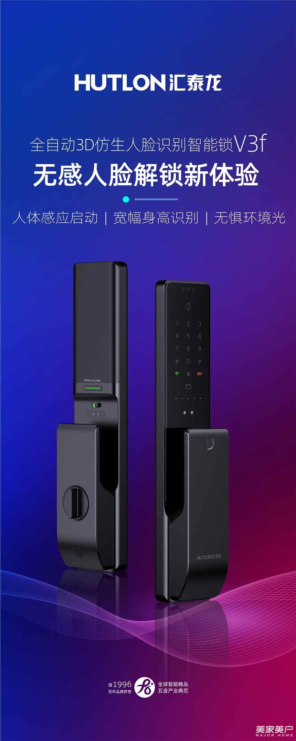 汇泰龙重磅推出的D1f和V3f两款全自动人脸安全云锁,支持人脸识别、指纹、密码、CPU卡、临时密码等六种开锁方式;面板采用IML与钢化玻璃工艺,耐磨、抗静电;拥有双目仿生3D 立体人脸识别、银联认证人脸识别算法、人体感应唤醒、全自动开关锁等“黑科技”,让用户解锁“无感刷脸”生活。