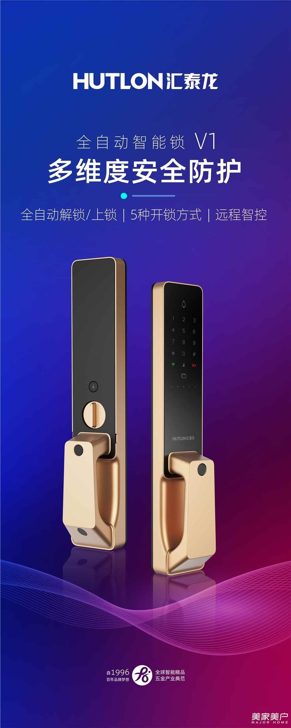 V1全自动安全云锁利用人体工学,让用户握住拉手的瞬间,便完成指纹识别与解锁;室内把手内部设有电磁碰板,用户握住室内把手顺势按下解锁按键即可一步解锁出门,此设计有效防猫眼开锁与幼儿、宠物误开锁。汇泰龙自主研发的新一代全自动智能门锁:D1f人脸安全云锁、V3f 人脸安全云锁、D1、V3s和V1安全云锁,三个系列五款安全云锁,凭借全自动的开关锁体验、智能的功能、安全的防护,以及多重提示灯、高灵敏电容式触摸键盘和真人语音导航双重导航,迎宾门铃等人性化交互设计,满足人们对门锁科技的想象。