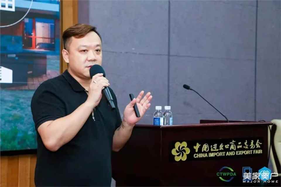 图森木业有限公司执行董事兼总裁王维扬作了《自然与现代的对话》主题演讲,表达了人们的消费水平相比以前有很大提升,但比从前更加焦虑,只有回归自然,才能让人感到放松、安逸。