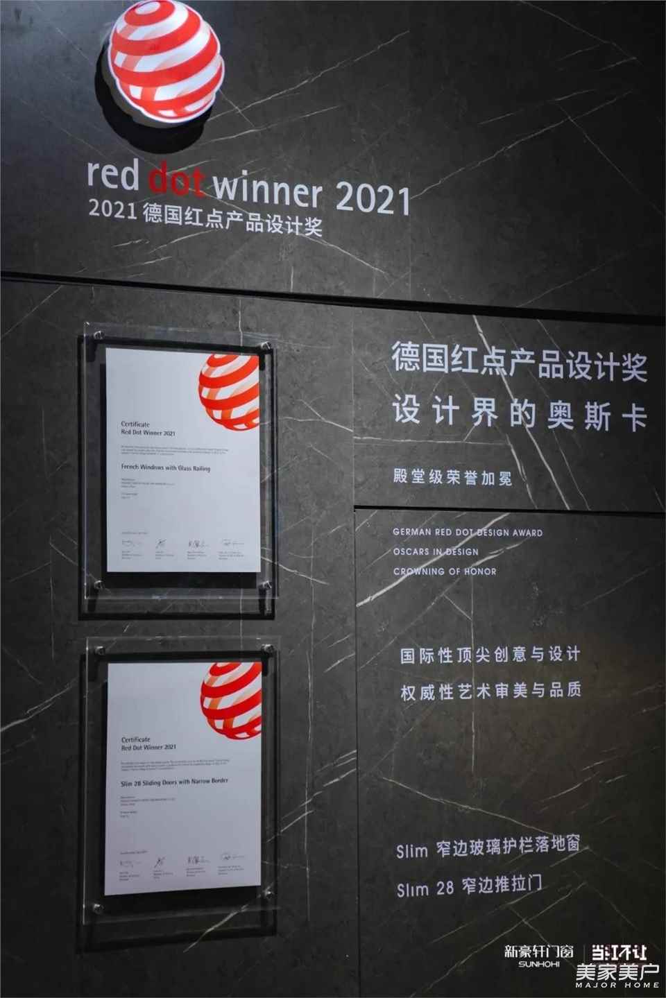 作为国内率先获得德国红点产品设计奖的门窗品牌,在本届展会中,新豪轩向来宾展示了斩获这项设计界奥斯卡的产品——Slim窄边玻璃护栏落地窗。