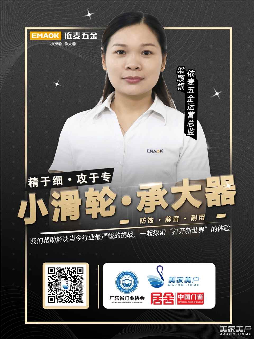 今年下半年,依麦五金主打产品为功能性滑轮和联动、移门缓冲器系列,以及极窄系列、中窄系列、一字轨、三字轨等系列产品。以往,依麦只做滑轮,今年加大功能性五金研发力度,进一步补齐产品线。接下来,依麦还将研发一些吊轮产品,有两大意义:一是证明依麦五金的研发能力,二是更好地服务依麦五金的客户,解决产品“痛点”。缓冲系列产品的痛点是安装调试难度大。依麦最新推出的缓冲系列,安装师傅所用的时间已从原先的一天转变为10分钟,并且不需要破坏门窗的任何形态,这对于安装技术的要求大大降低。新品系统全部由依麦自主研发,并获得相关专利,均为行业首创,已解决门窗企业安装痛点,能够更好地服务全国门窗企业。