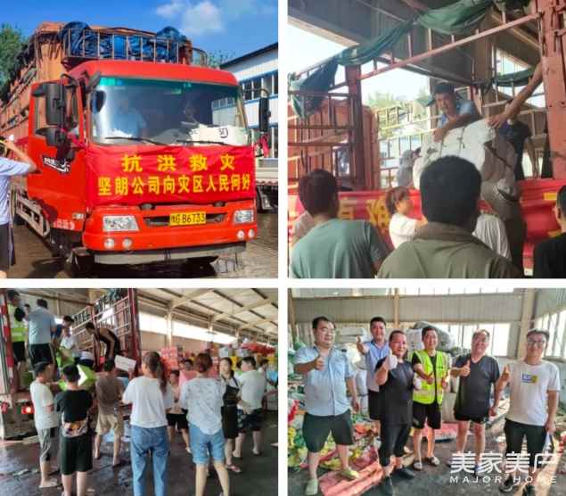 为帮助受灾群众恢复生产生活,更好地保障人民群众灾后的基本生活,今天,坚朗又向受灾严重的卫辉市上乐村镇捐出了第四批物资,包括3000箱八宝粥、400箱火腿肠、400箱水等,用于解决受灾群众的生活急需,助力受灾地区重建工作。