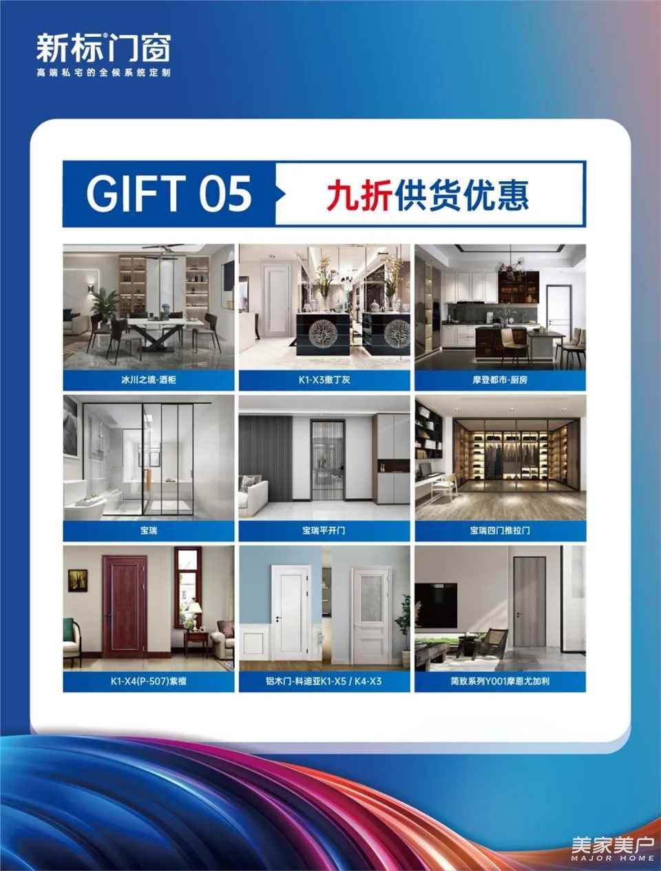 惊喜何止这样!新标门窗厂商联合大让利,全屋空间的门窗墙柜等极简轻奢产品,在终端门店折扣上,再以9折优惠政策大尺度惠民。热销爆款的全屋品类涵盖多种风格与款式,简约经典,百搭大气,全方位满足不同消费者对品质生活的追求,带来极致的全候系统家居体验!