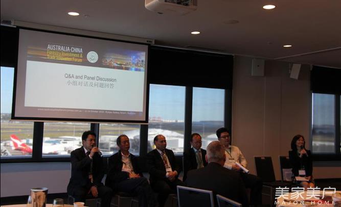在第四阶段专题讨论和问答环节中,中国室内装饰协会副会长田万良先生、广东润成创展木业有限公司董事长关润开先生等五人作为中方对话嘉宾。双方的对话嘉宾分两轮就对方代表提出的感兴趣问题做了风趣详细的回答,现场气氛热烈融洽。尤其值得一提的是:作为中方代表团唯一一家展览公司代表,中国伟士佳合国际有限公司董事长、中国国际门业与集成定制家居展览会秘书长陈伟先生在回答澳方问题后,还向澳方代表介绍了“中国国际门业与集成定制家居展览会”的发展历程和国际影响力,同时诚挚邀请与会澳方代表及澳大利亚林业相关协会,组织澳大利亚优秀林业企业赴中国北京参观2017年3月14日开幕的“第十六届中国国际门业与集成定制家居展览会”,澳方代表愉快的接受了邀请。
