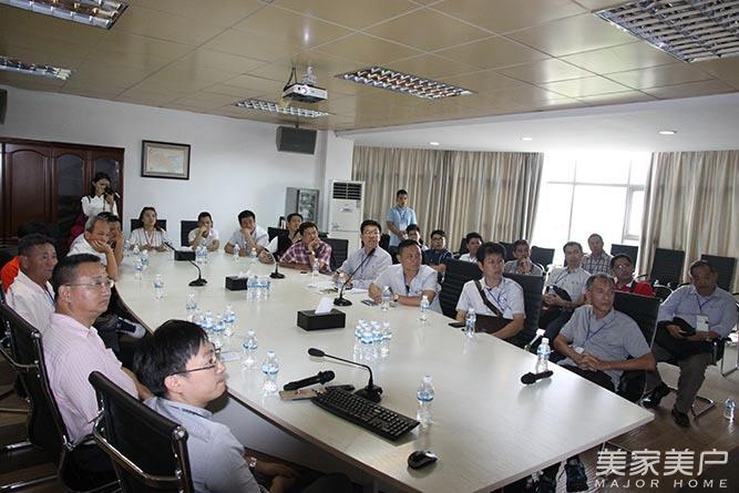 上午,考察团一行到达“索菲亚”广州增城市新塘镇宁西工业园后,在“索菲亚”供应链及客服部总监吴浩等人的陪同下,参观了索菲亚家居研究院(家具材料实验室、热力学实验室、甲醛检测室等),以及索菲亚智能化、工业化的柔性生产线,快速贴面等生产车间。在各生产车间,考察团一行近距离参观了“索菲亚”家居产品的生产流水线。参观后,考察团一行对“索菲亚”智能化、工业化的柔性生产线均赞叹不已。据悉,2013年,“索菲亚”引入全亚洲第一条定制衣柜企业柔性自动化生产线。该生产线由信息软性系统与生产硬件系统结合而成,软件系统整合了ERP等多个软件,下单、拆单等工序都可由系统自动生成,保证质量的同时能够提高效率,节省成本,有效解决了“索菲亚”生产交付方面的瓶颈。
