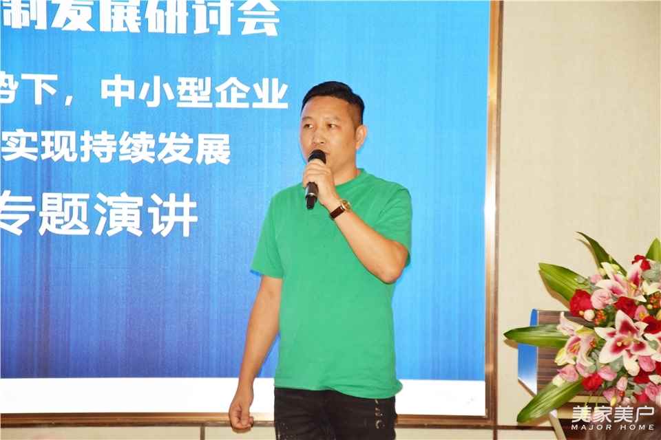 嘉盛木门董事长林水青分享《在新形势下,中小型木门企业如何实现持续发展》。在演讲中,林水青讲广东木门中小企业要有自己的思维;要有自己的拳头产品,不要盲目跟风,差异化定位。林水青表示,随着未来房地产的需求下降明显,出口单量下降,中小木门企业面临生存问题;广东中小木门企业要控制规模,先求生存,再谋未来。