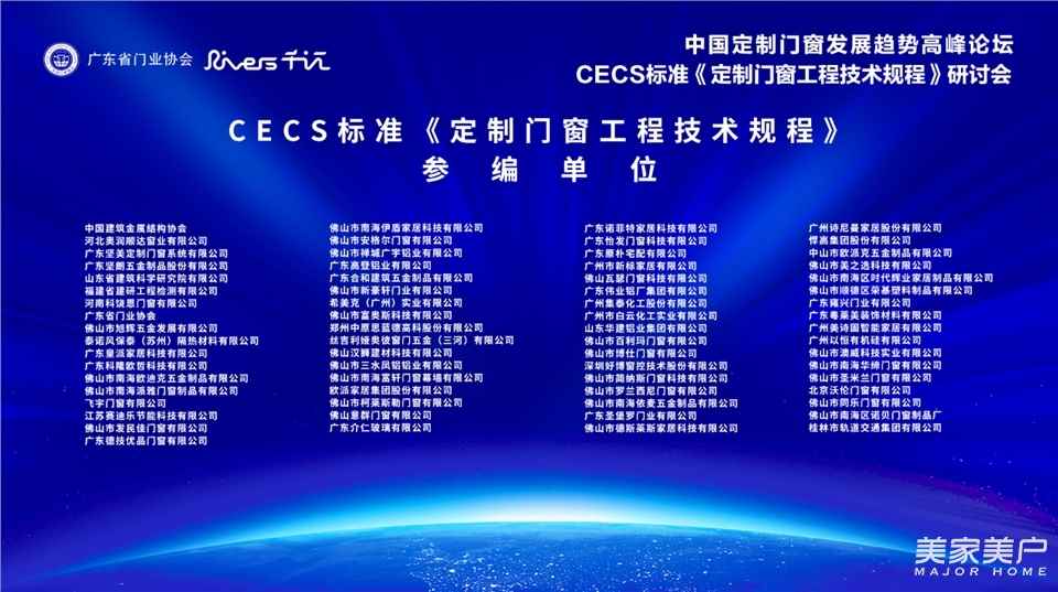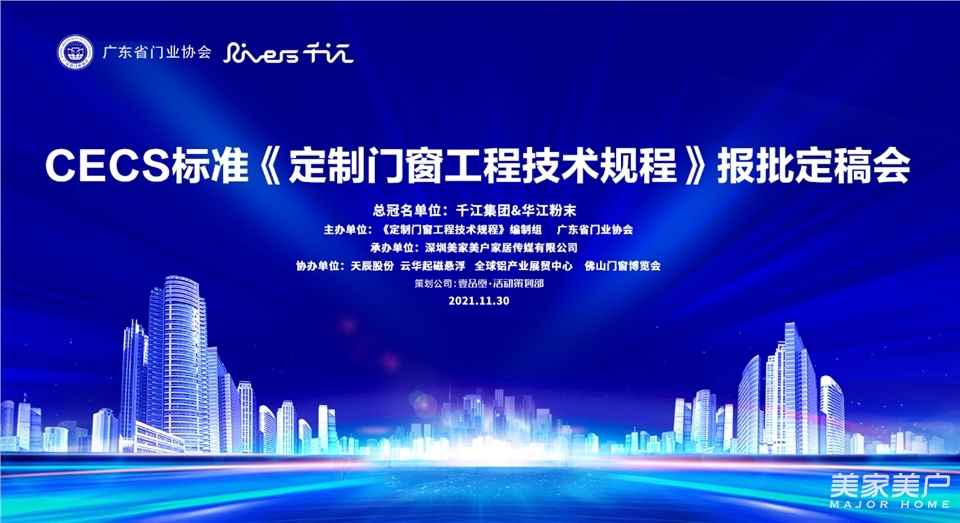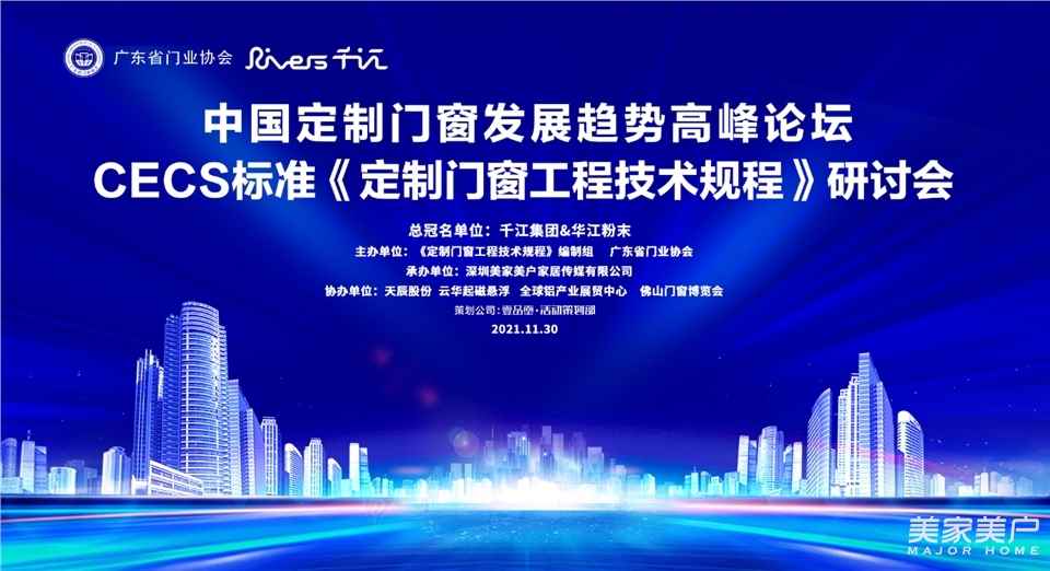 11月30日,由“千江集团与华江粉末”总冠名,CECS标准《定制门窗工程技术规程》编制组、广东省门业协会主办,深圳美家美户家居传媒有限公司承办的“中国定制门窗发展趋势高峰论坛暨CECS标准《定制门窗工程技术规程》研讨会”在佛山举办。