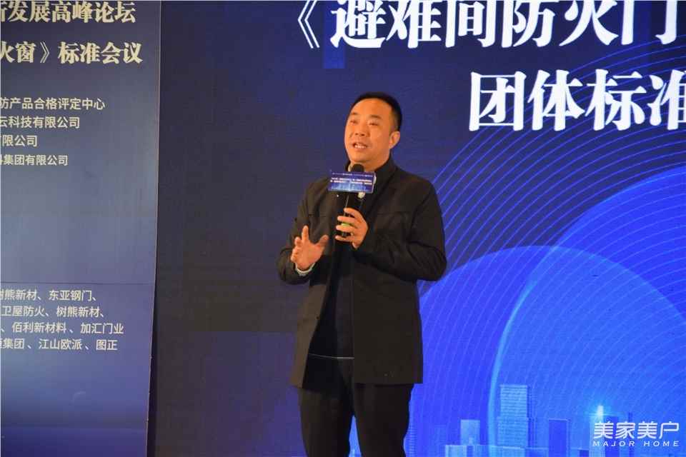 会议开始,广东省门业协会执行会长、龙树实业集团董事长邓树生率先上台致欢迎词。邓会长表示,早年间企业申请标准,困难重重且花费不菲。近年来防火门窗的标准日趋完善,这是必要的,我们众多企业也应该予以支持。很多工厂都完成从渠道到工程的转变,做工程绕不开的就是各种标准和要求。本次《避难间防火门》《避难间防火窗》团体标准启动工作会对行业具有积极的推动意义。