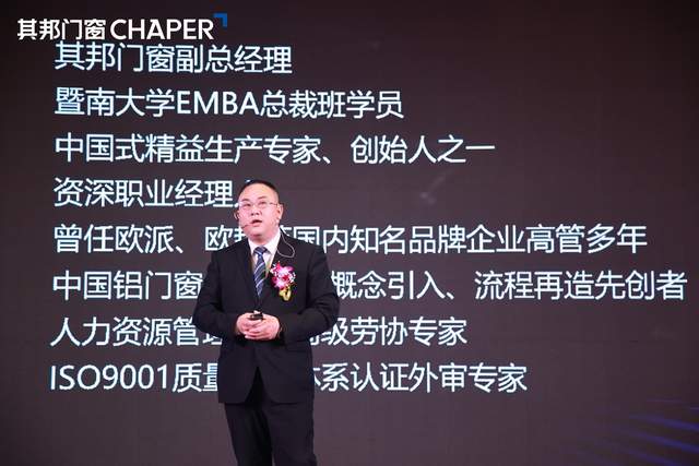 其邦门窗副总经理钟成生从6S管理、生产管理等15个方面对生产进行总结并从目标导向、重构逻辑、预算管控、组织精益、产能设计、产线优化、双链重构、供应链管理、数字化转型、交期管理、物流管理、技术升级、质量升级、售后帮扶十四大板块讲述了其邦2022年的布局。
