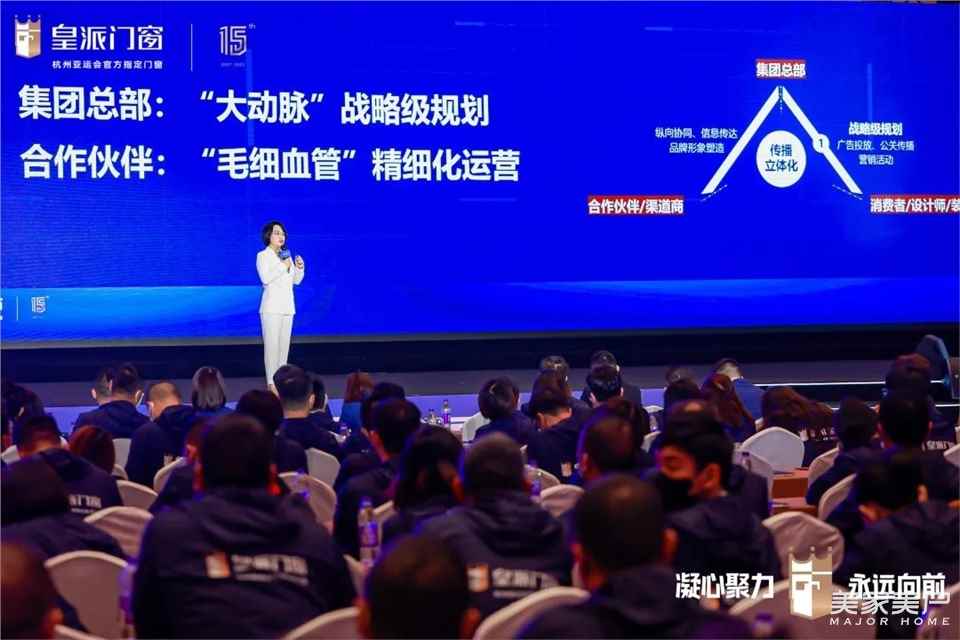 本次峰会特别邀请中国视觉锤设计权威专家、李和杨品牌创始合伙人——杨江,以及核桃战略创始人赵秀丽,分别对皇派门窗全新VI形象使用规范与品牌势能升级进行宣讲,传递“门窗之王”高端品质。15年实力沉淀,皇派门窗以前瞻性思维,在时代及市场潮流中实现品牌跃迁式发展,将持续带给消费者全新家居消费体验。