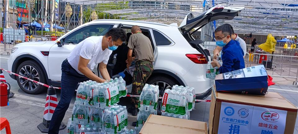 为积极深入学习贯彻习近平总书记关于疫情防控工作的重要指示精神,全面落实省、市工作要求,进一步做好当前疫情防控工作。4月14日下午,广东省门业协会党支书记马建华、秘书长饶德亮、执行秘书长王生华,副秘书长谢泉锦、梁辉、姚晓飞赴佛山禅城区张槎街道智城社区智慧新城全员核酸检测点,助力社区全员核酸检测,抗击疫情,做志愿者服务;同时协会和会员企业佛山市盛锋门窗配件有限公司向现场捐助1万只口罩和40件饮用水。张槎街道智城社区陈胜杜书记和陈碧霞副书记对大家的到来表示感谢。