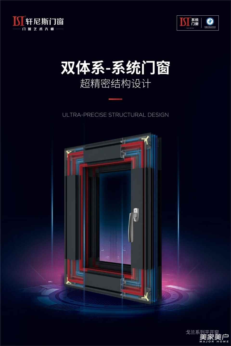 “双体系”系统门窗,是轩尼斯门窗追求完美门窗解决方案的创新力作,极具前瞻性与开创性的研发理念与设计制造工艺,可谓前无古人。作为轩尼斯门窗双体系-系统门窗的第一款产品——戈兰系列平开窗,对轩尼斯门窗品牌以及系统门窗行业具有创新性的标杆意义。