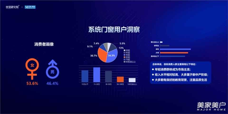 系统门窗要根据不同的人群在品牌、产品方向上去匹配,需要更加时尚化、年轻化、高品质,不能停留在功能性层面,这个是我们从用户端洞察的分析,也给很多企业带来启发,未来品牌、产品到底要往哪一个方向走?