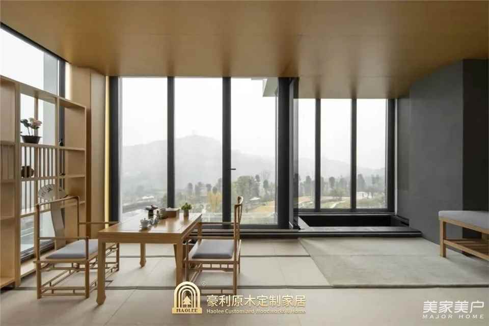 在现代格局之中,融入绵绵古韵,透过落地玻璃窗门尽情观赏室外的鸟语花香,打造清风入堂、处处诗韵的空间感。