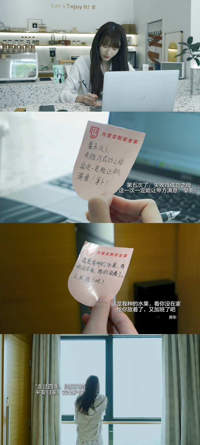 “爱的留言”系列短片第二期,以独自在外拼搏的人为视角,讲述了面对工作压力,不断总结与努力,带着勇气迎接一个又一个挑战,取得成绩的小场景;同时,也讲述了在冰冷的城市中房东带来的点滴感动。日常生活中,也有许多像短片中的房东一样充满善意的人,用他们的举动温暖着我们。