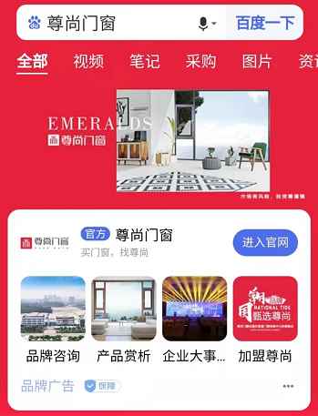 品牌力量丨尊尚门窗百度品牌专区5月1日正式上线!