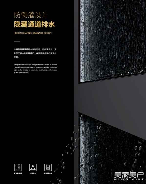 隐藏排水设计把整窗的颜值提升,垂直排水结构能有效规避雨水倒灌的风险。