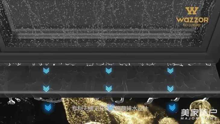 WAZZOR瓦瑟系统门窗研发团队,深入研究雨水在整窗的流动方向,结合各地的气候特征反复测试,成功发明《隐藏垂直排水系统》。