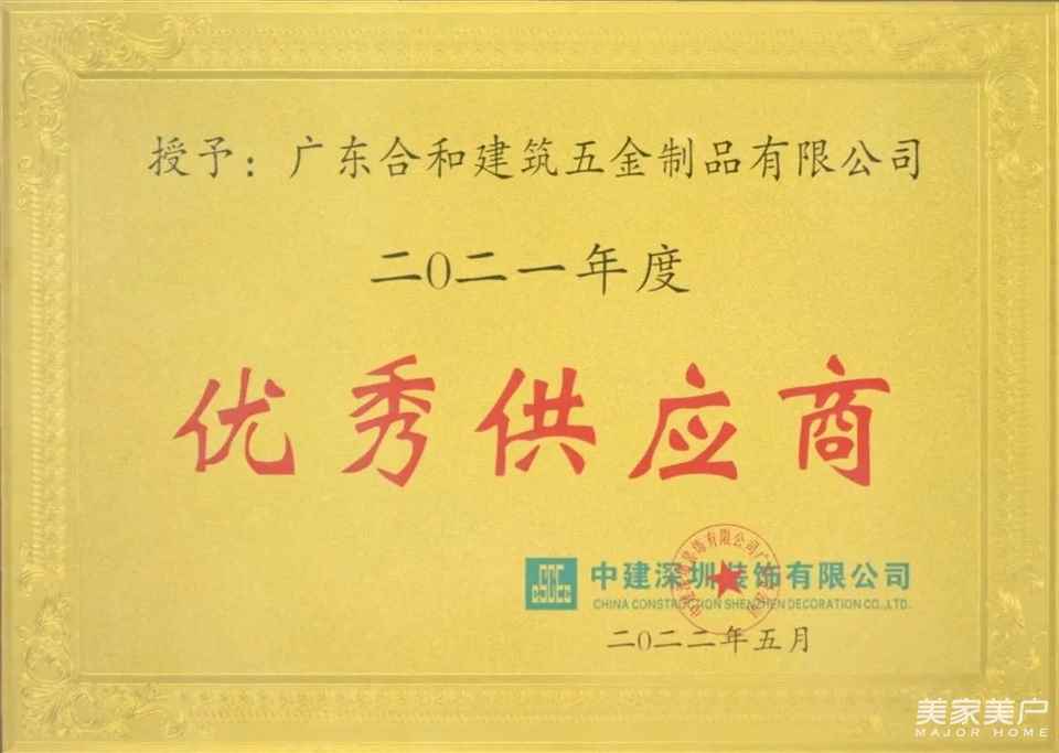 喜讯| 祝贺合和建筑五金荣获中建深装“2021年度优秀供应商”称号!
