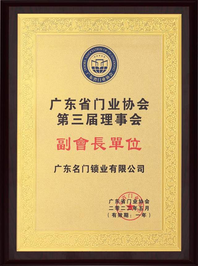 近日,广东名门锁业有限公司(简称:名门)已正式申请加入广东省门业协会第三届理事会,并荣任广东省门业协会第三届理事会副会长单位。