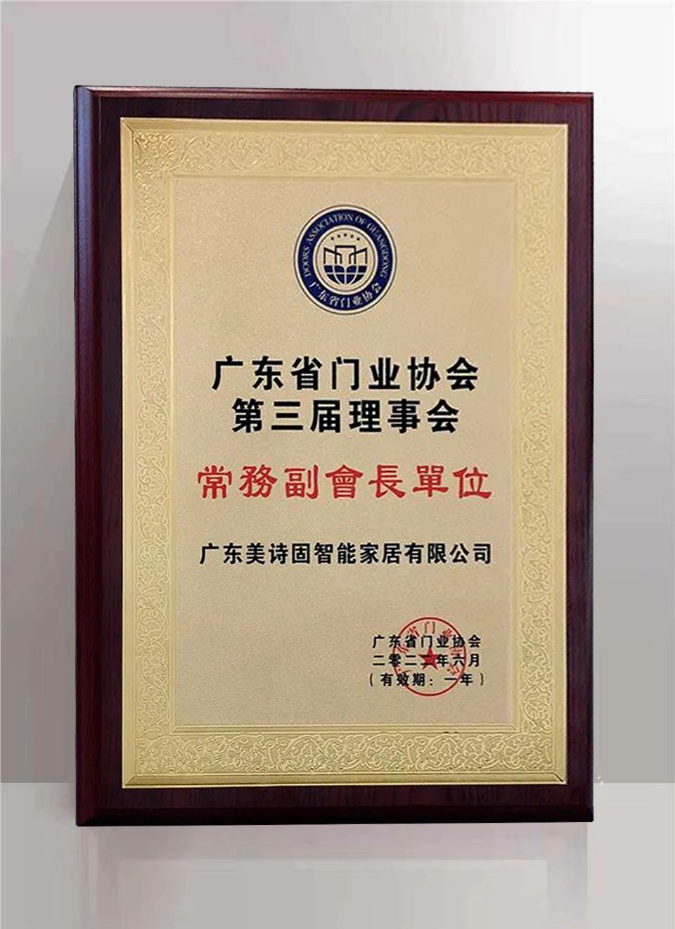 近日,广东美诗固智能家居有限公司凭借雄厚的企业实力,当选广东省门业协会第三届理事会“常务副会长单位”,同时,美诗固门窗董事长詹缅阳被授予“广东省门业协会常务副会长”。