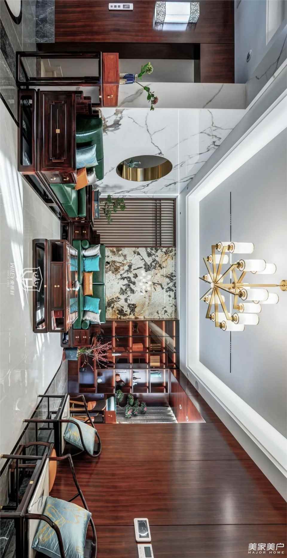 利落线条演绎出黄金比例,疏展纹理悠游于自然元素,清晰而富有韵律,运用体块的重量感与轮廓感,结合平和的视觉构造手法,营造出一个静逸的世界。“居于自然,我们称赞精神的归宿,于是空间在干净、雅致中落地。”