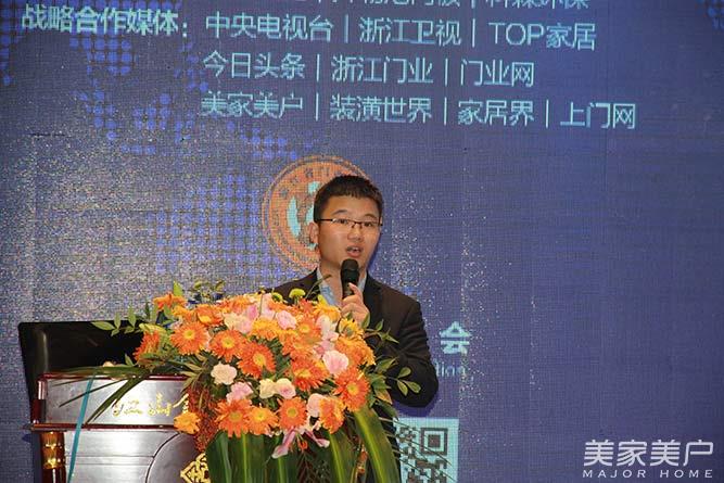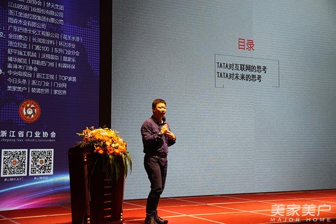 TATA木门总经理张岩向与会嘉宾分享“木门企业如何做电商“的演讲