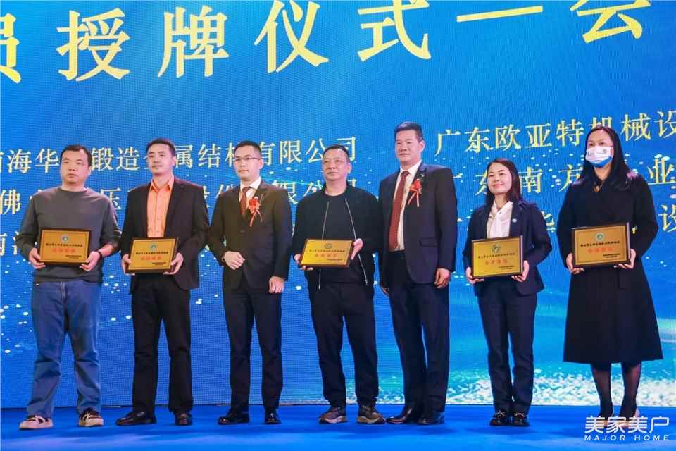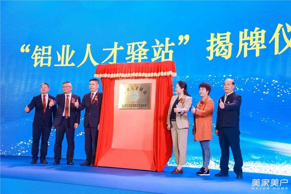 三水区工商联党组成员、专职副主席胡小燕、三水区总工会副主席邓丹丹、三水区人力资源社和社会保障局二级主任科员刘永富、三水铝协党委书记、常务副会长余双辉、常务副会长林文、林耀广先生共同为“三水铝协铝业人才驿站”揭牌。